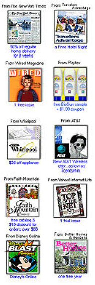 Here are some samples and offers our Founder designed when she was Webmaster at Metromail and Experian in 1997. With the inhouse team she redesigned and optimized the site and our Co-Director