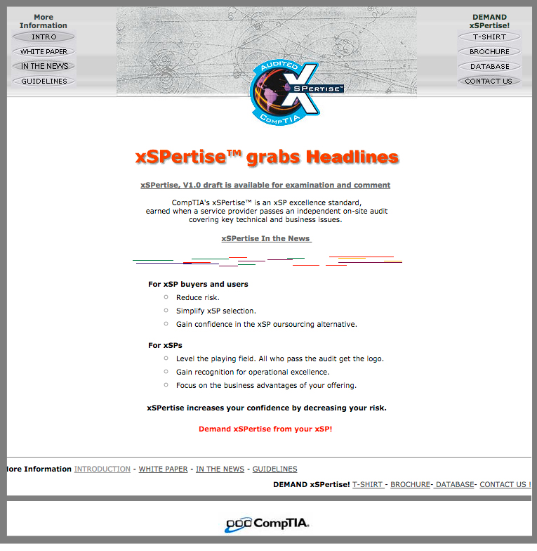 We redesigned the main website for the Computing Technology Industry Association. 3 clicks to what the visitor wanted to do or find. They also hired us to design a site for their "Demand Xpertise from your ISP" initiative.