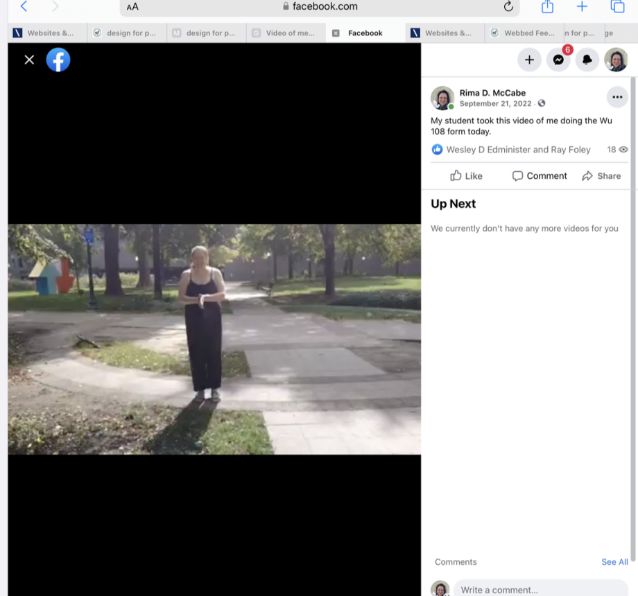 I was doing Tai Chi and one of my students was doing some warmups where you flick imaginary water off your fingers. Which I learned from my zoom class with the Wu Style Federation, in Toronto